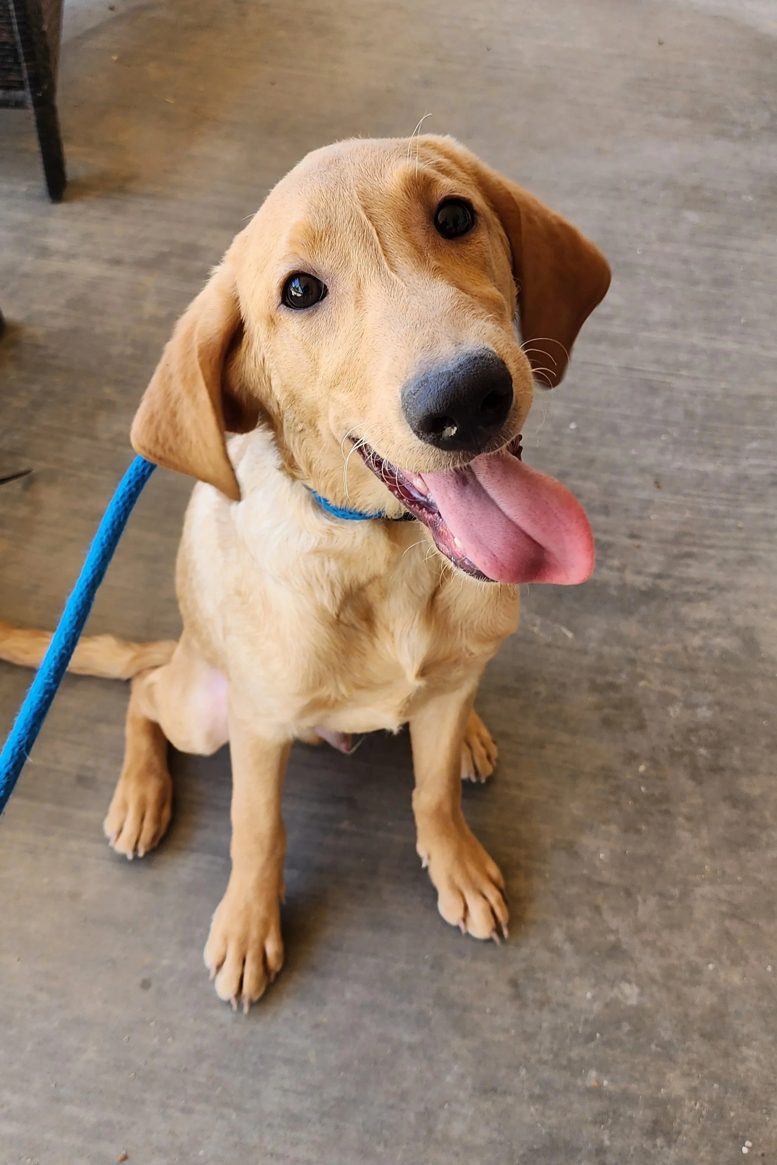 Hello Charlie!! He is a 2 year old yellow Labrador Retriever and is in our phase one service dog program. Charlie enjoys car rides, his training times, visiting new public places, and playing scent games. He is attentive to his handlers and loves water. He has completed his Phase One diabetic alert dog service dog training. He is a chill happy dog.